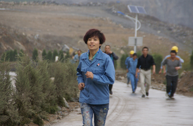 剛開始,隊(duì)伍顯得很擁擠??墒?,100米、200米……隊(duì)伍逐漸拉長,盤山公路上隊(duì)員三個(gè)一群、兩個(gè)一伙。有的隊(duì)員領(lǐng)頭跑在最前面,健步如飛;有的隊(duì)員插著腰,大口大口地喘著氣兒;有的隊(duì)員雙腿像灌了鉛,卻仍是努力向前奔。幾位女隊(duì)員表現(xiàn)很不錯(cuò),頗有“巾幗不讓須眉”之風(fēng)。山道上,加油吶喊聲此起彼伏。經(jīng)過近半小時(shí)的努力,參賽隊(duì)員終于全部跑到終點(diǎn)。工會委員蔡群榮遞給大伙兒的一杯杯熱葡糖糖,讓我們疲勞頓消。